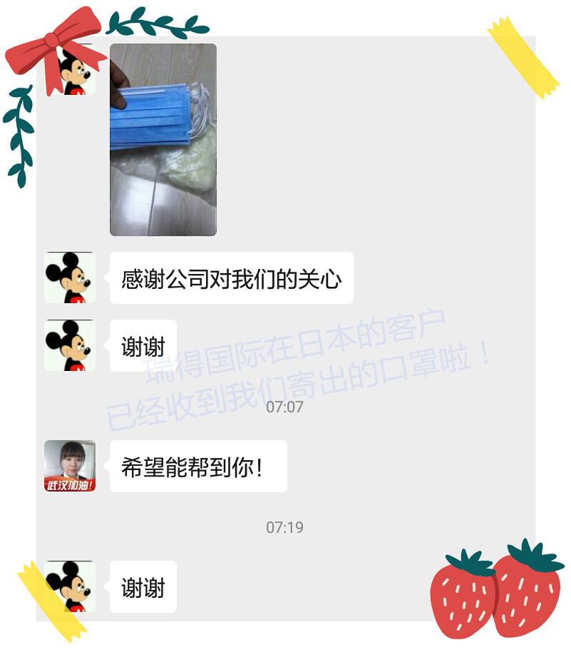 目前日本口罩短缺,超市便利店基本貨架都賣空了,在一罩難求的情況下,2月26日,瑞得國際海外部將多個(gè)瑞得國際暖心包(包含口罩和一次性手套等),整理好已經(jīng)發(fā)往日本!支援客戶!