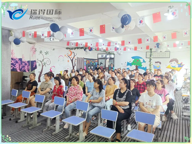 瑞得國際副總經(jīng)理郭阿麗,業(yè)務總監(jiān)樊公理,出國項目部經(jīng)理薛佳,以及擔任本次教學任務的四位韓語教師出席了開班典禮。